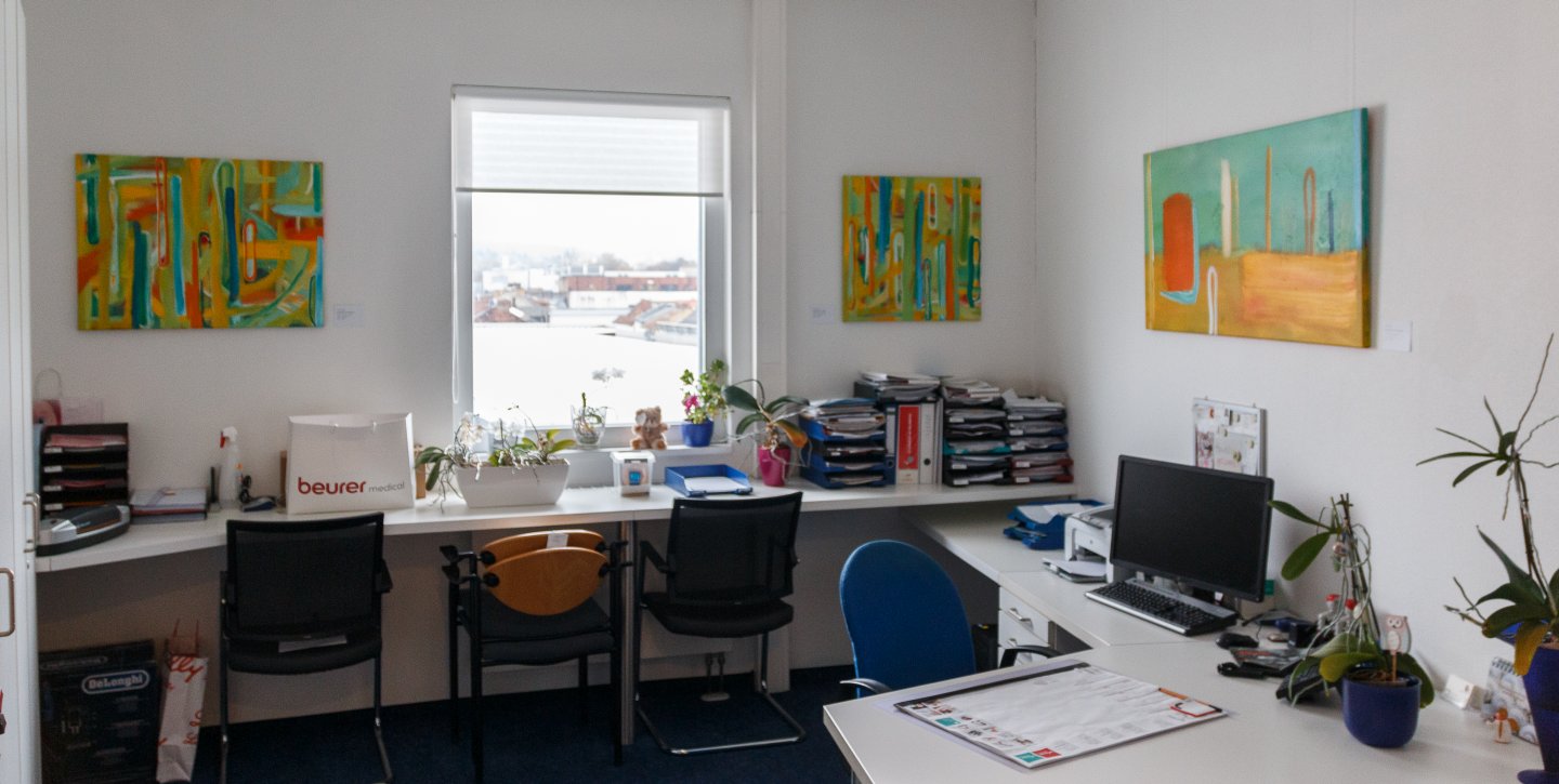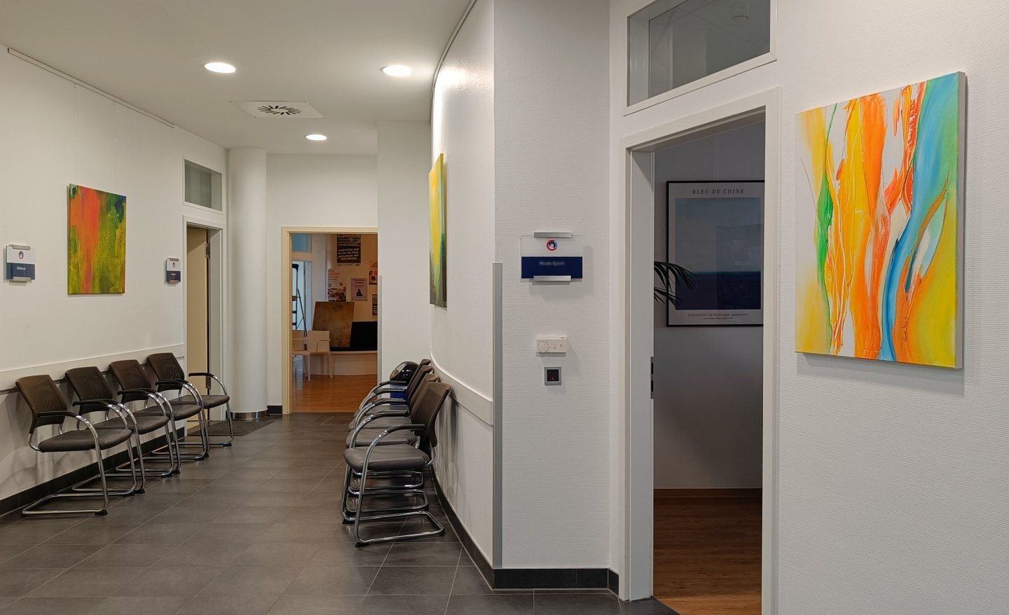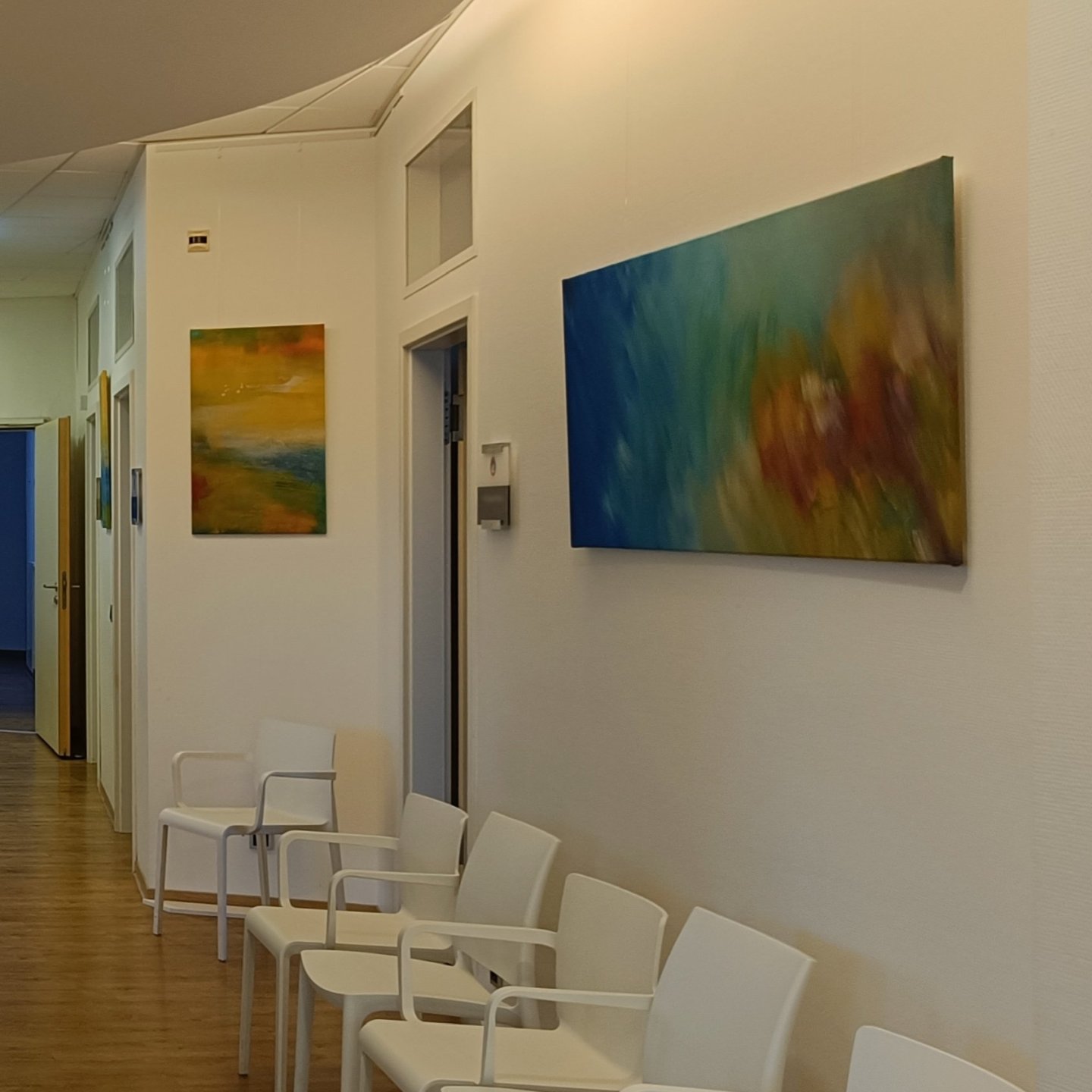 Since 2021, I have been working as the artistic director for the Internal Medicine Specialists in Aschaffenburg. Their very large doctor's office has a focus on oncology and diabetology, with various examination, treatment, and consultation rooms, as well as several waiting areas. My role is to conceive and implement exhibitions that change approximately every two years. The artworks are intended to be calming, hopeful, and encouraging. I have curated two large exhibitions with up to 105 original works by various artists, which were rented for the duration of the exhibition. Over time, some of the exhibited works were purchased for permanent display. For the most recent exhibition, the client requested the inclusion of art prints of paintings.