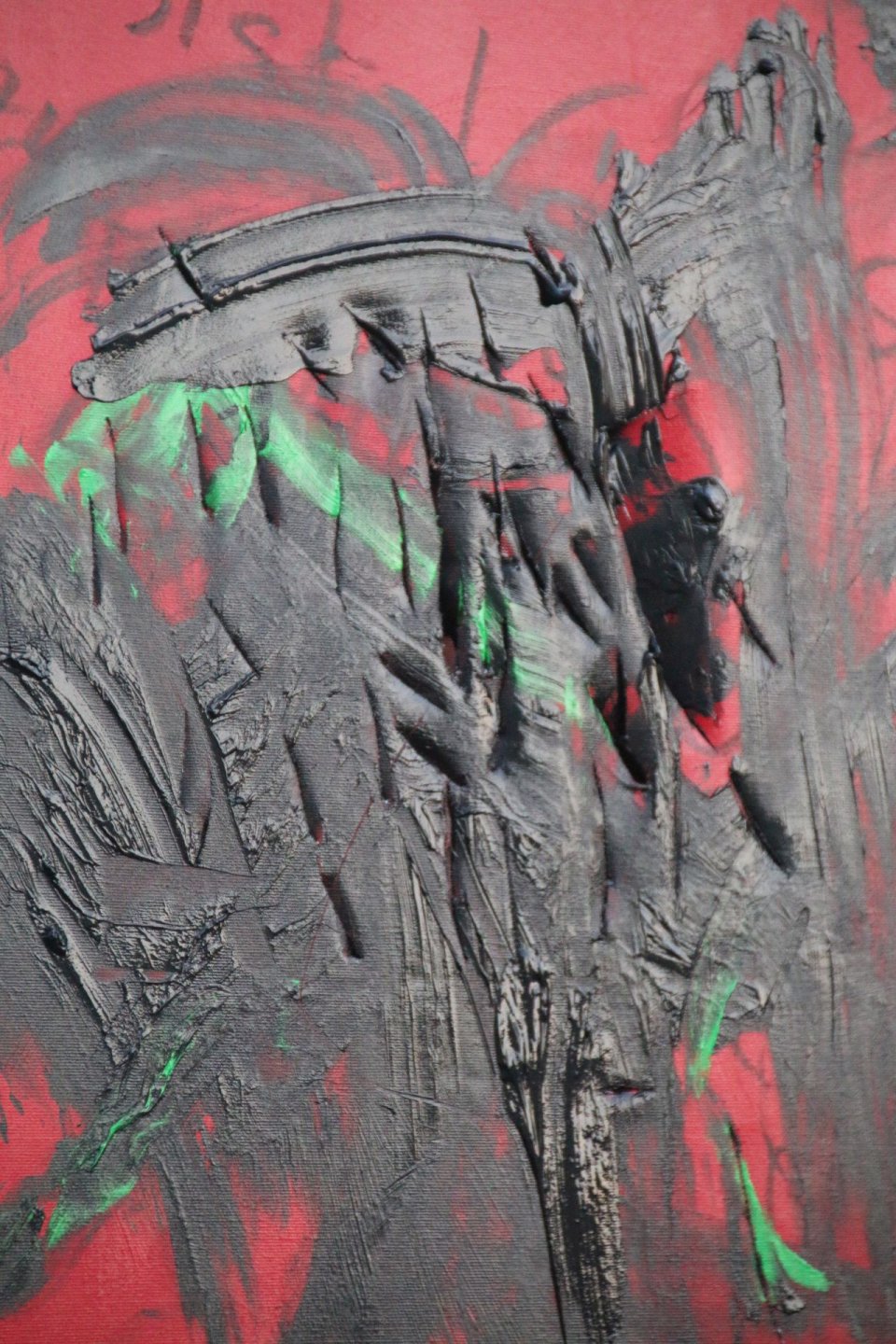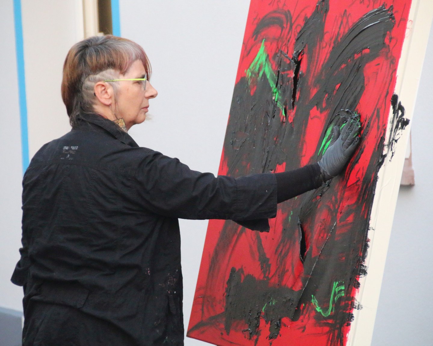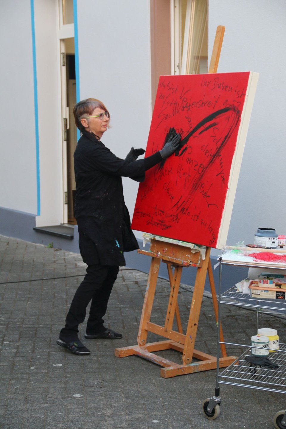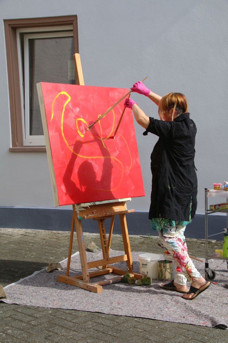 When I paint with a band, sound, rhythm, text and atmosphere connect with me and my perception, this happens intuitively or rationally and finds its visual echo on the canvas.